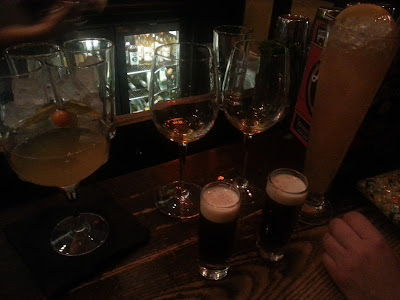 We worked our way through some of their fun cocktails, with Sam the barman providing us with free tasters of the more bizarre ingredients - e.g. Bacon infused Bourbon in "Porky's Revenge", Umeshu - plums steeped in alcohol and sugar, Pie Crust Syrup - a sugar syrup reduced from sweet pie crusts! We also managed to blag a free shot of the Dime Bar Snood Shooter for checking in to their site on Facebook. When we first arrived we weren't sure it was going to be anything special but thanks to great, laid back service and some quirky cocktail ingredients we ended up having an awesome night there. The cocktails are nearly all £7.50 and there is happy hour every day from 5-7 (until 9 on Thursdays). Go down on a Wednesday night for "Man vs Chicken" - all you eat wings. Also look out for their Bottomless Brunch on Sundays which comes with unlimited Bloody Marys or Mimosas for just £16!